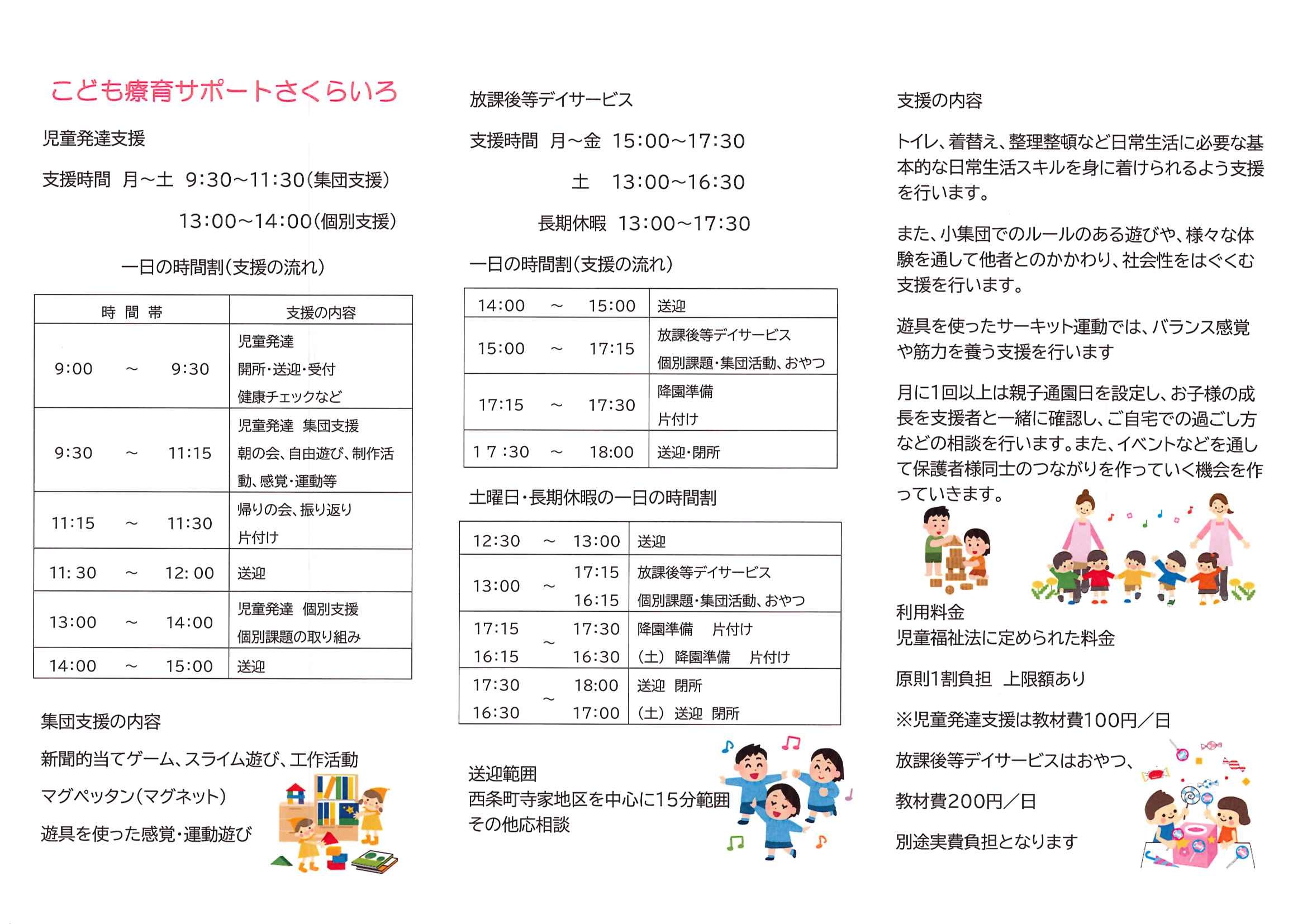 支援時間 月~土 9:30~11:30(集団支援)